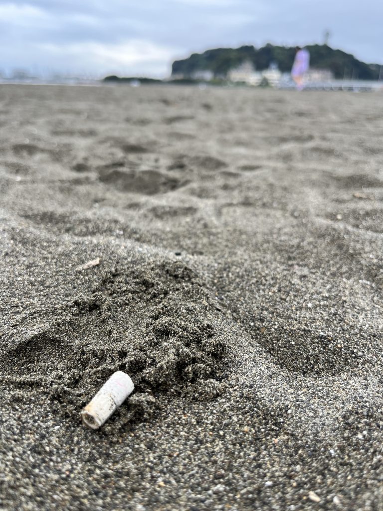 午前中にもビーチクリーンが行われていた会場だっただけに、大きなごみはありませんでしたが、やはり気になる海洋プラスチックごみや、たばこの吸い殻、花火のごみなどを拾う事ができました。