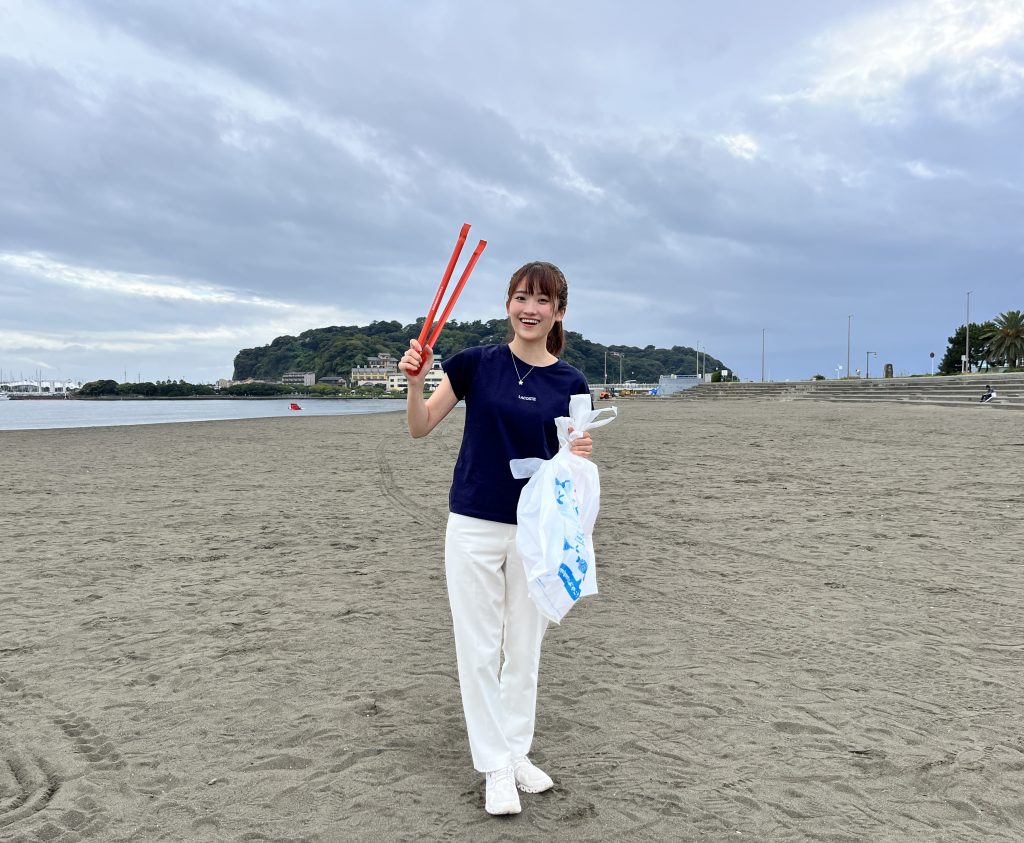 そして、15時25分過ぎには、片瀬東浜海岸で実施されていたビーチクリーン会場から、FMヨコハマでは、夜の番組「PRIME TIME」でもおなじみのDJ 川内美月さんが生リポート!